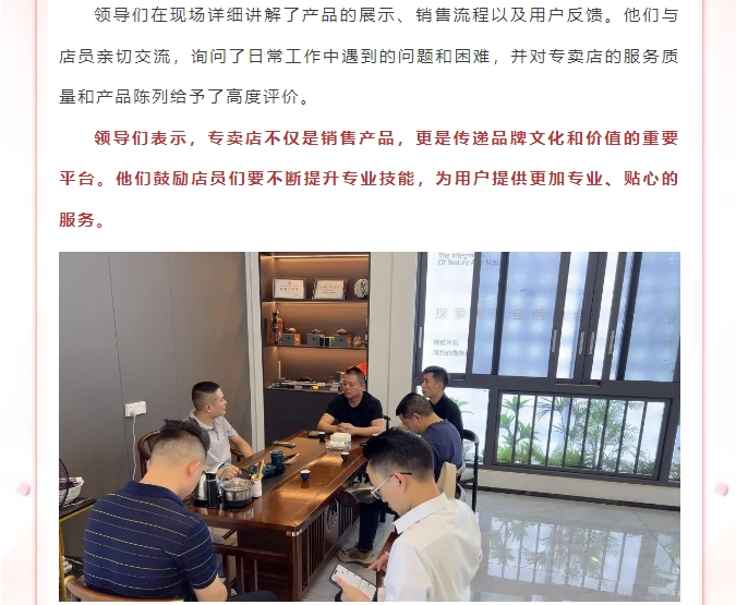 当天,专卖店负责人和店长予以热情接待,并对到访的各位领导一行表示热烈的欢迎。各位领导在专卖店负责人的陪同下,首先参观了门店的展厅,展厅内陈列着星佰汇门窗上市的新品,设计精美、品质卓越,充分展示了星佰汇门窗的技术实力和创新精神。