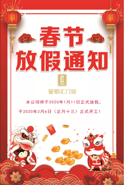 律回春晖渐,万象始更新,我们告别成绩斐然的2019,迎来了充满展望未来的2020。 春节小长假的到来,我司假期时间安排如下,若有不便之处,敬请谅解!
