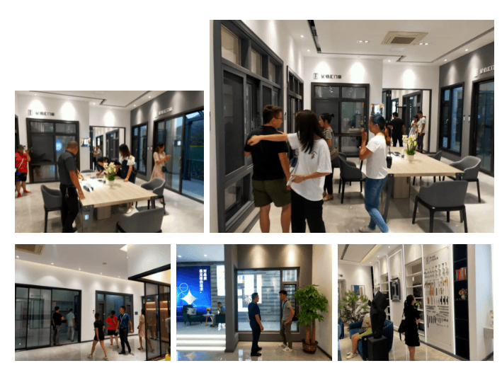 由星佰汇生产主管黄维、夏主管组成的技术团队对门窗产品技术结构进行讲解,并与现场经销商家人们互动,直接解答。