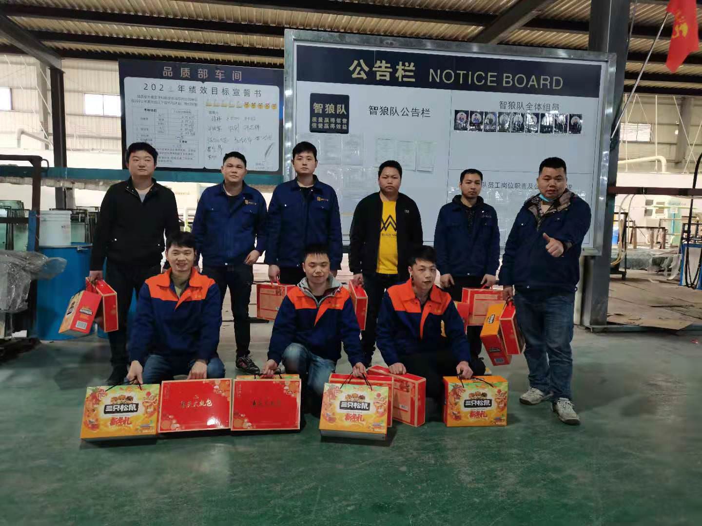 星佰汇门窗人声鼎沸、热闹非凡,各员工兴高采烈的拿着大包小包的礼品。