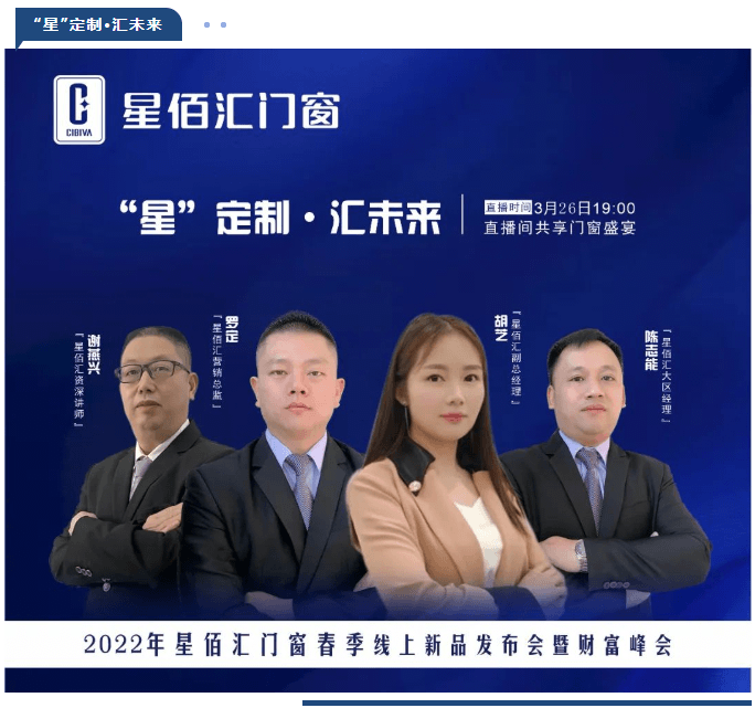 为响应国家疫情防控期间有关会议管理的要求,本次财富峰会选用线上模式举行,诚邀各地的经销商朋友们拨冗与会,期待与您共商星佰汇2022年度合作发展大计。届时,来自全国各地的星佰汇家人将齐聚云端,共同享受这场集视觉冲击力、思想感染力、形象召唤力于一体的门窗行业饕餮盛宴!