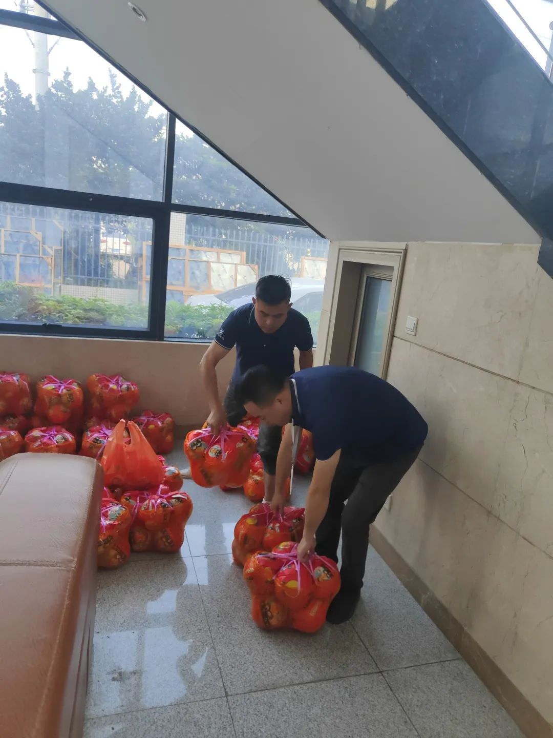 大家都在有序的排队领取,